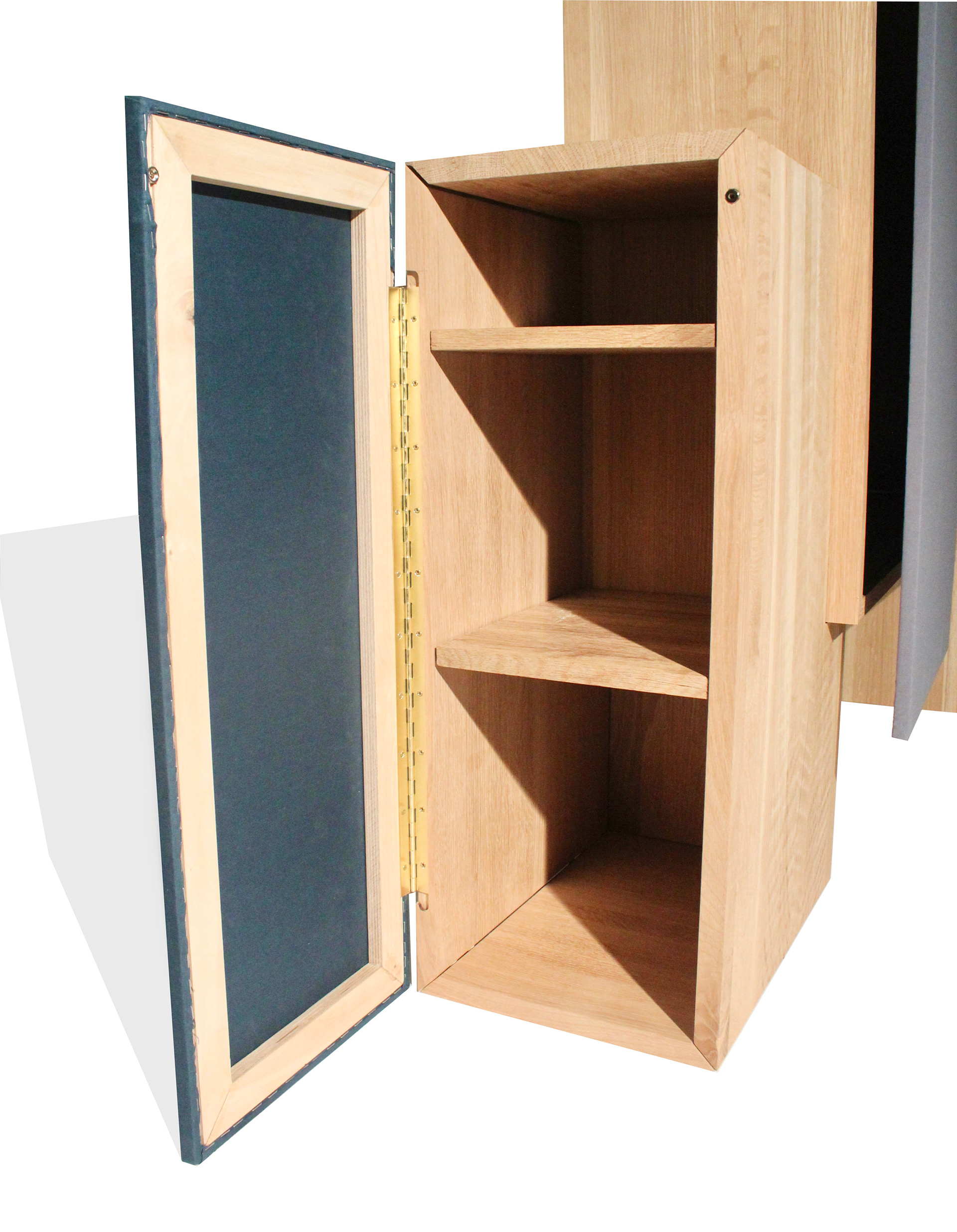 Gjennom tidene har TV-en utviklet seg raskere enn møbelindustrien og skaper et stort fokus i interiøret. SKYV lar deg skjule TV-en når den ikke er i bruk. Designet oppfordrer til interaksjon og har et brukervennlig design av materialene heltre eik og tekstil.